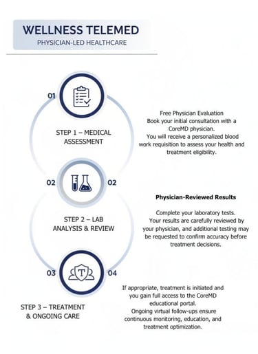 CoreMD Clinic is designed as an ongoing medical partnership. Over time, your doctor continues to:Monitor your labs and clinical results