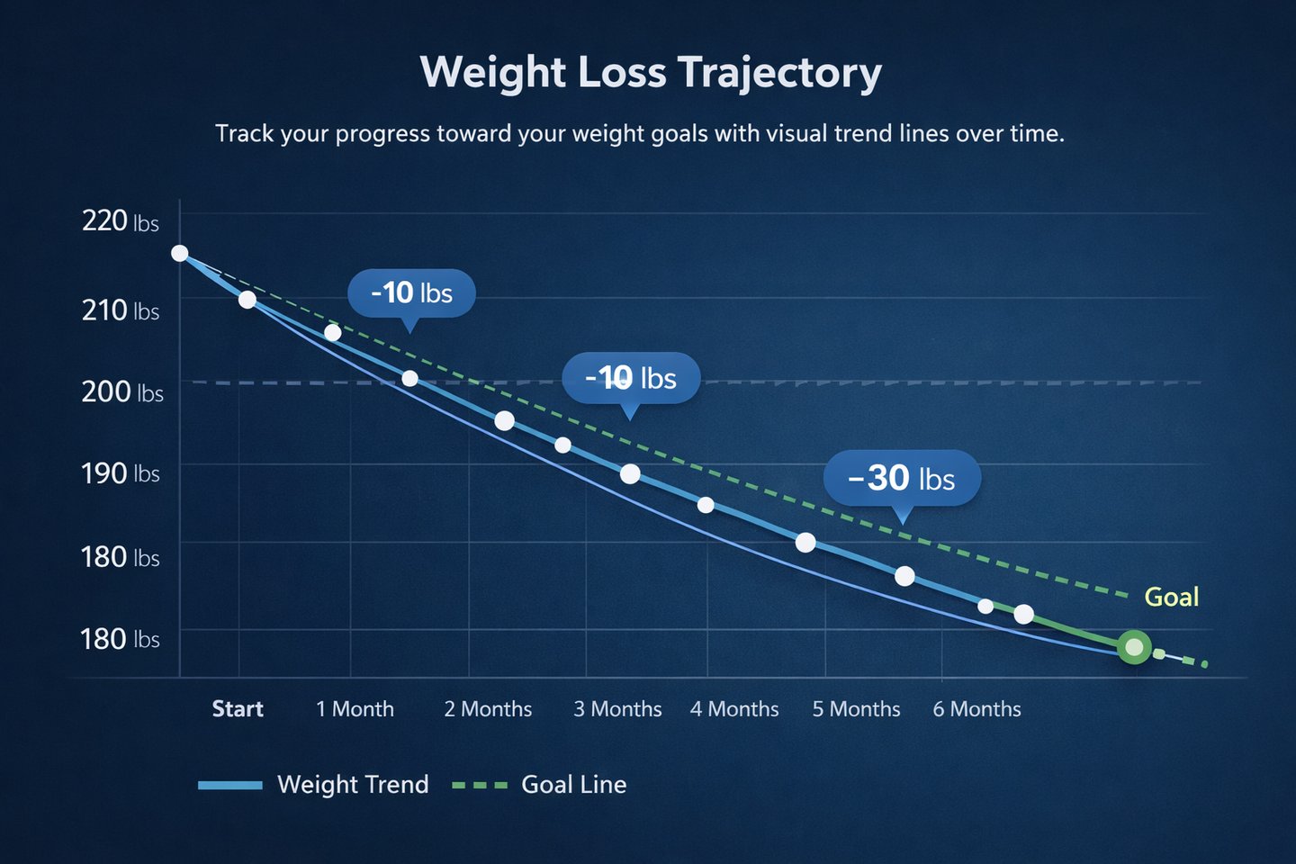 Track your progress toward your weight goals with visual trend lines over time.